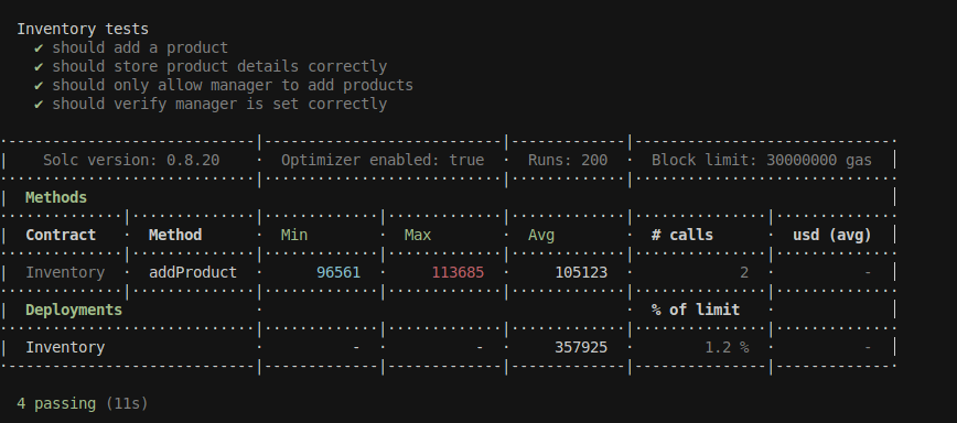 &#x20;         Next, run the gas reporter again. You should observe the following output: