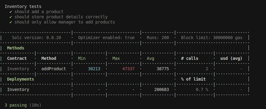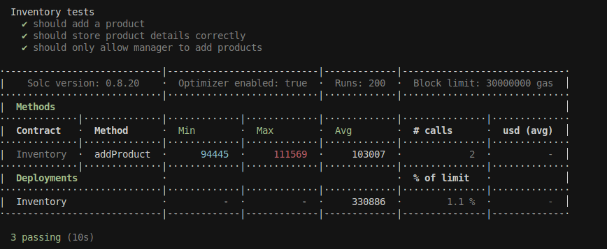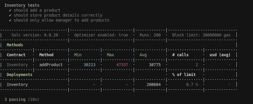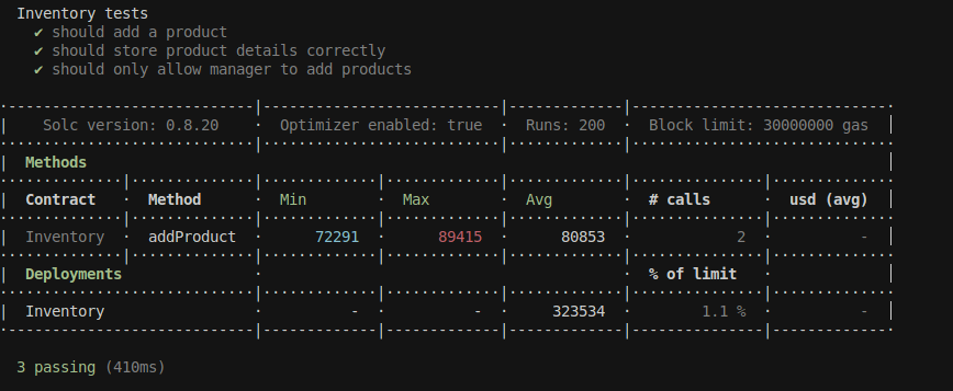 &#x20;         This results in a further reduction in the gas consumption of the `Inventory` smart contract. However, you can optimize even more by avoiding on-chain storage entirely for certain data. Instead of saving items in a mapping, you can emit events and treat them as a lightweight, cost-effective form of storage.