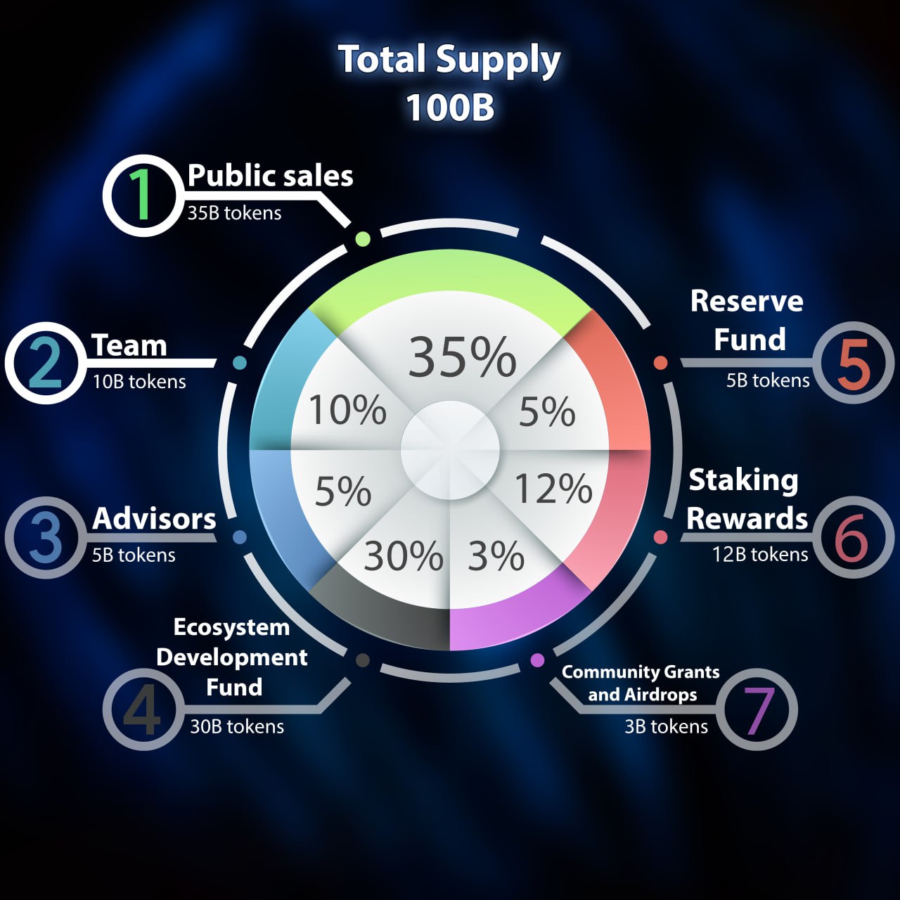 Total supply : 100B Public Sale (Initial Distribution):